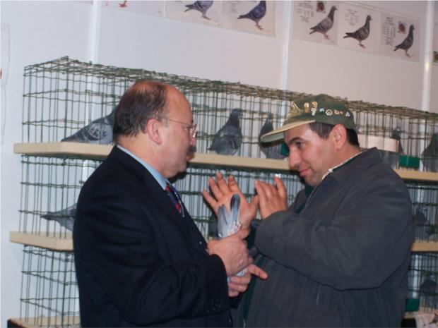 Um columbofilo Inglés em troca de lembranças com um dos organizadores deste jantar amigo Cesário.