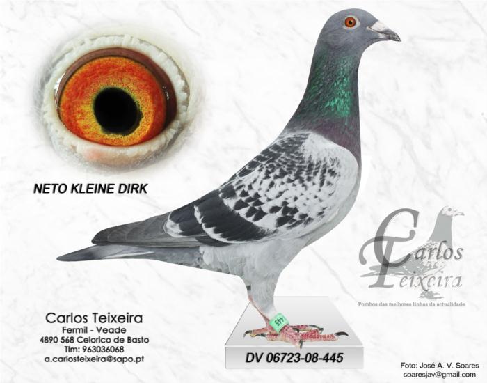 Se estes pombos ainda não tinham sido inventados. Quem, o KLEINE DIRK, concerteza! Este é o protótipo do pombo moderno para as provas de fundo de um dia. Um pombo de porte pequeno com um olhar inteligente, penas macias como seda e um carácter que vai ao limite! Ele fundou um tipo de pombos como nunca antes visto, vencedores de provas de Fundo de um dia. Os seus descendentes são responsáveis por performances que antes seriam consideradas impossíves. Nas provas dos 100 aos 800 kms, eles são considerados favoritos e raramente não cumprem o seu objetivo. Com várias fêmeas, o KLEINE DIRK, produziu inúmeros cracks e não vendê-lo foi provavelmente a melhor decisão que o Gerard alguma vez tomou.