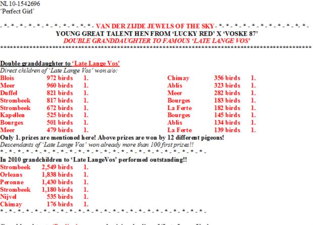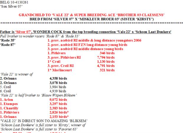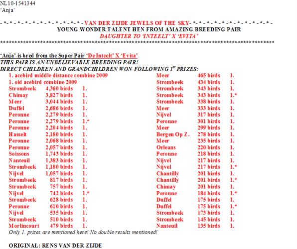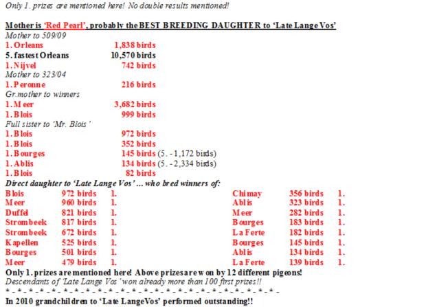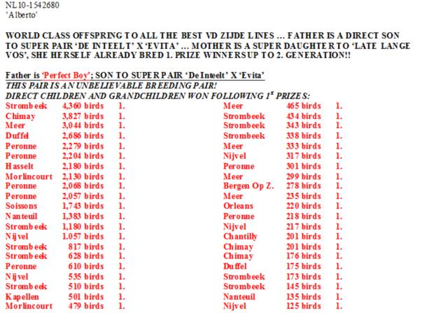 Foram 4 pombos adquiridos nos leilões Internacionais PIPA, e apesar da soma avultada, a minha vontade de estar sempre na linha da frente, impelou-me a fazer um esforço para adquirir estes pombos que serão um reforço excepcional para a minha colónia.