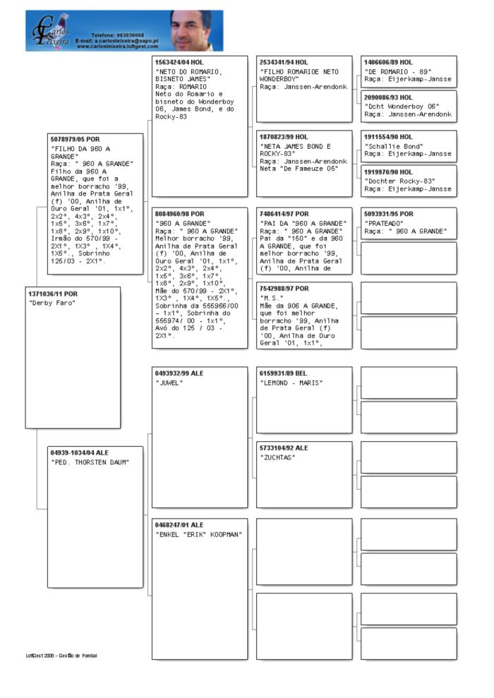 A destacar também o pombo nº 1371036/11, um pombo que nos treinos teve 3 dezenas, 1º, 3º e 6º. Um pombo Neto da 960 A GRANDE e filho uma fêmea original Thorsten Daum.