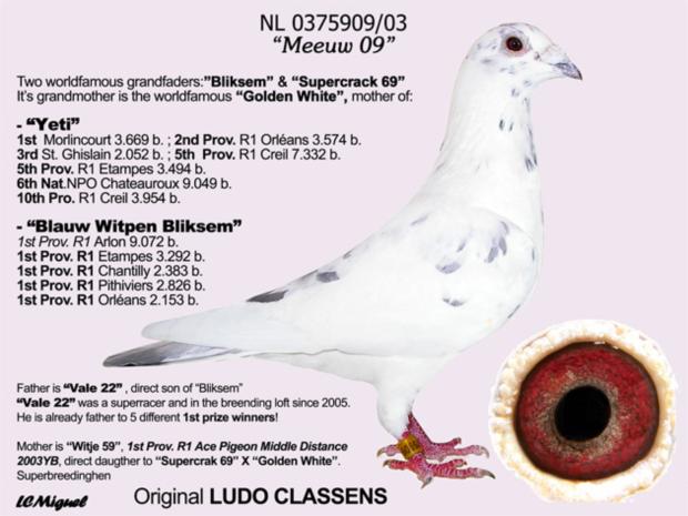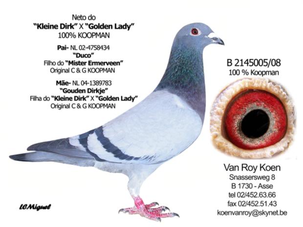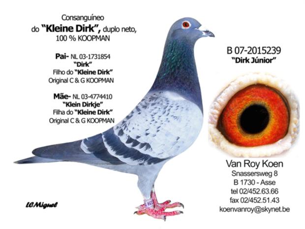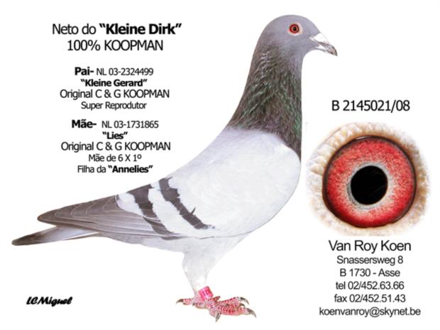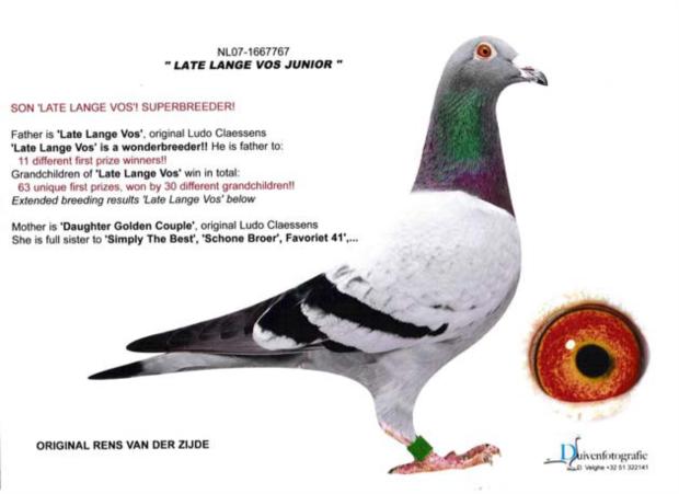 É com enorme prazer que comunica-mos mais 6 novas aquisições, para o nosso Centro de Criação, do fantástico e historico leilão de Erik Limbourg onde foram vendidos 246 pombos a uma média de 5.100,00 euros por pombo, o que rendeu mais de 1.250.000,00 euros.