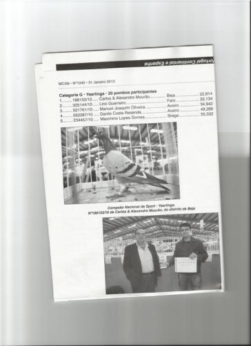 XXXIX Exposição Nacional de Columbofilia Classe Sport - Categoria G - Yearlings | |