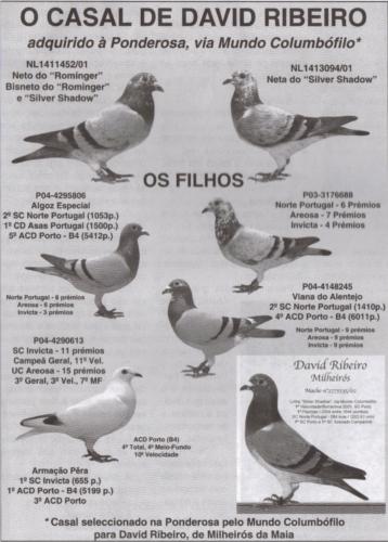 CASAL IMPORTADO SILVER SHADOW " DA PONDEROSA VIA MUNDO COLUMBOFILO " " ( CASAL SUBSTITUTO DO CASAL DE OURO ) "