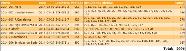 Resultados obtidos em 2014 até ao concurso de Ermidas do Sado 29-04-2014