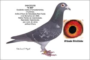| Pai: 9464203/99 POR - "O 203" | Mãe: 1373611/01 POR - "Balança 611" | "O 203" Raça: Janssen / Armindo Macho Pedrado 14 encestamentos, 14 prémios.Anilha de Ouro de Velocidade, Meio Fundo e Pombos de Ano.Melhor pombo da Colectividade .Só concursou 1 ano. Pai de 18 Pombos Campeões em todos os Campeonatos, vários netos e bisnetos Campeões. Provavelmente o melhor pombo de sempre, dificilmente conseguirei um substituto de tão elevada qualidade.