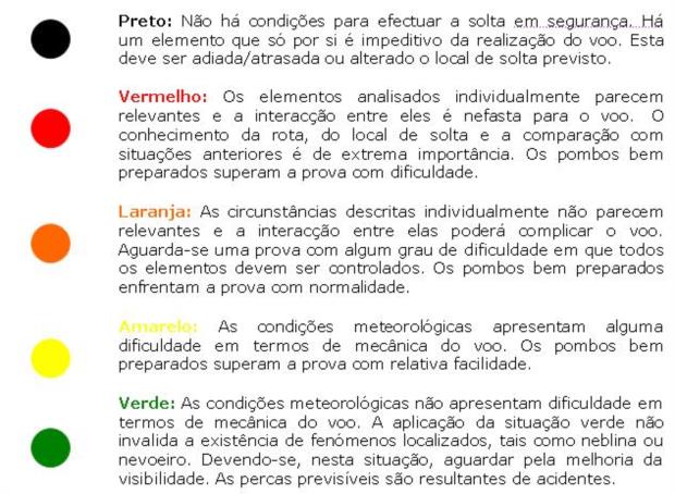 Saliente-se que movimentos verticais (Trovoadas) localizados, são de difícil previsão pelo que só no dia da solta e mediante análises de Radar e Imagens de Satélite se pode relacionar o grau e a perigosidade para o voo dos pombos-correio.