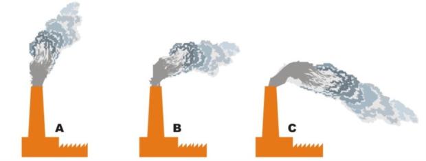 Figura A não há inversão térmica à superfície: o fumo sobe na vertical;