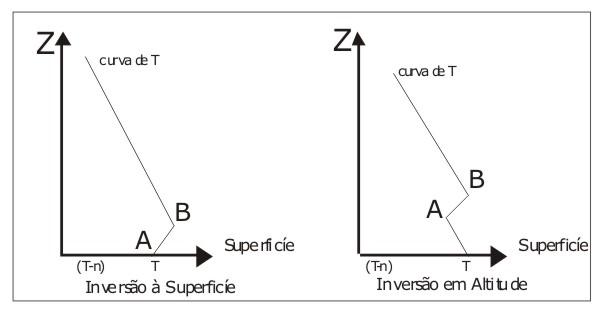 Inversão à superfície. A inversão térmica à superfície é provocada por um grande arrefecimento nocturno junto ao solo. O ar quente fica por cima do ar frio. Acontece frequentemente nos meses de Inverno e princípio da Primavera, com dias de céu limpo, podendo haver neblina ou nevoeiro matinal que se dissipa ao longo da manhã. Ou seja: quando os raios solares aquecem a superfície da Terra e a temperatura vence a inversão provocando uma diminuição da humidade relativa. Saliente-se que mesmo sem nevoeiro pode observar-se uma inversão térmica à superfície.