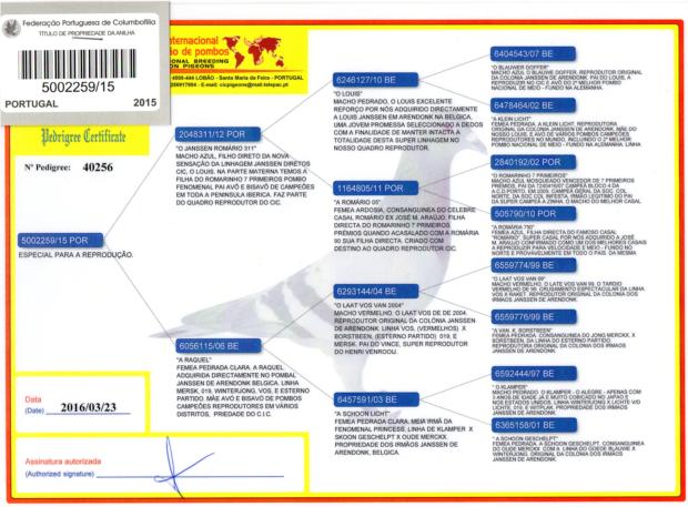 A amostra está identificada com o meu nome para não revelar o nome do columbófilo que agora já tem o seu problema resolvido.