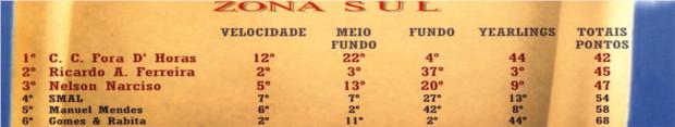 | Classificação distrital velocidade Sul / Poente eq-A e B |