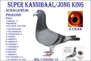 "SUPER KANNIBAAL /JONG KING" Raça: KANNIBAAL /JONG KING Macho Malhado Tipo: Reprodutor O Pai é filho do " Sorento " Original Eddy Janssens e Puro do «« Kannibaal »» .Cruzado a uma fêmea do Eddy Janssens " Zus BART " mãe do " van Lorre 1º da Union Antwerpen Jong " e filha do casal douro " De Kerkstoel + Mónica ". A Mãe é uma Pura janssen van Boxmeer filha do " Super Beeder 5***** Stars many Champions " e da "Beauty Flower " pura R & G Shalkwijk ganhou 17º em 3.031 p ,123º em 2952 p