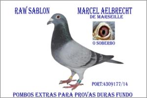 Macho SUPER POMBO RAUW SABLON X MARCEL AELBRECHT O PAI 1009079/06 DESTE MACHO É NÉTO DO De MARSEILLE de MARCEL AELBRECHT E A MÃE 1009041/06 É TAMBEM NÉTA DO De MARSEILLE ESTE POMBO FABULOSO EM MÃOS TEM GRANDES CONDIÇÕES PARA SER UM REPRODUTOR MUITO ACIMA DA MEDIA