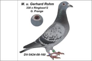"PRANGE-330" Raça: Gunter Prange Macho Pedrado Tipo: Reprodutor G. PRANGE é a geração de pombos mais cobiçada da actualidade. Neste pombo encontra-se o sangue do 330« 8 x1*.- »( G.PRANGE ) + o DOCHTER 063 ( BEUTE & ZOON ) + ASSVOGEL 802 (G.P.) + RINGLOSE12 (G.P.) TOCHTER ASS-V 802. Faz casal com a 160 -DV - 08 - ( G.Prange ). Os filhos são consaguinios do 330.