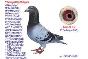 "5038688/05 Port SUPER BARTOLI JUNIOR" Raça: Janssen/ De Klak Macho Azul Tipo: Reprodutor NÉTO do SUPER «« BARTOLI »» 5639312/96 NL filho do NL 89/2681193 e da NL90/2550824 de HANS eIJERKAMP & FILHOS Este macho só deu pombos de ouro principalmente as femeas voadas até aos 650km destaca-se Anilhas Douro ,Prata e bronze em Velocidade e Meio Fundo numca mandamos a fundo. A Mãe deste pombo é uma janssen Holandeza 100% arendonk