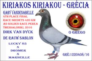 "SUPER REPRODUTOR KIRIAKOS" Raça: KIRIAKOS GABY Macho azul guias brancas Tipo: Reprodutor ESTE SOBERBO MACHO ORIGINAL KIRIAKOS GRÉCIA CAMPEÃO DO MUNDO DA F.C.I GANHOU 4 th PLACE fINAL RACE SREDETS 420 KM ,AS GOLDEN RACE PEREA THESSALONIKI , 2016 O PAI 0537062/11 GRÉCIA Gaby vandenabelle / Eijerkamp 1St Ace Club 05 10/10 2012,, 1St Ace Club 05 5/5 Short distance , 2012 ,,A Mãe 56601/14 bulgária Gaby Vandenabelle / Sablon Full Sister 15082/13 Winner Olr Corábia 515 km ,, 1 St Ace pige