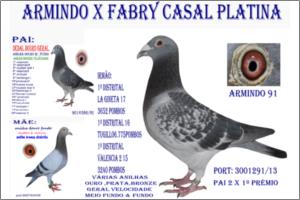 Macho ESTE POMBO FOI CRIADO PARA NOSSA REPRODUÇÃO ,É IRMÃO DE VARIOS POMBOS CRAKS ONDE DESTACO 3467852/13 : ESTA FEMEA FOI TALVEZ A MELHOR VOADORA DO NOSSO POMBAL :4ª NACIONAL FUNDO 2015,,,ASA DOURO DA GERAL S.C.MUGE ,, ASA DOURO U.C.ALMEIRIM ,, ANILHA DOURO FUNDO S.C.MUGE E ANILHA OURO U.C.ALMEIRIM, ANILHA PRATA FUNDO DISTRITAL ,DESTACO OS VÁRIOS 1º PRÉMIOS DISTRITAIS K GANHOU DOS 200 AOS 750 KM.