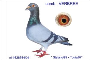 "CRAK VERBREE ESPECIAL FUNDO" Raça: VERBREE / St v.BREEM Macho Pedrado Tipo: Reprodutor " De Stefano Junior764/04 " extra reprodutor directo VERBREE filho do mundialmente conhecido " Stefano " 2076269/99 directo St. van Breemen e pai do 2e National NPO.Tours. Stefano é filho De Kleine Grijze94 X Marissa 95 filha do celebre Magnic X Dunga. A Mãe de Stefano Junior " TONIA "97 filha casal Douro Comb.Verbree ULTRA DOFFER 2334466/93 X Kweekduifje1581202/91 extra reprodutora Gebr. Wit
