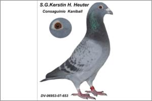 "KANIBALL-consaguinio-HOR" Raça: Kanniball Macho Pedrado Tipo: Reprodutor Este pombo é de umas qualidade fóra de série tem todos os sangue da linha KANIBALL. O Pai:"Dirk`s Remember " directo S G Kerstin u. Horst H. Dirk van Dyck -- Dirk`s Remember kommt aus unserem besten Zuchtvogel ALFONS und der Dirk`s Taum,eine Verpaarung!!! Der Vogel sab bislang in unserer Zuchtreserve und wurde erst jetzt in 2007 verpaart .Er soll vor allenm das wertvolle Blut des Kannibaal an seine Ahnen weitergeben « De Kaniball,- De 1*-Prijs Union Antwerpia,-De Rambo, -Het Laatje,- Kleine Witpen,- Else. O Pai é filho do ALFONS x Dirk`s Traum. A Mãe é filha de Nestbr. Quievrainman x Zuster Kaniball. " Else " directo Dirk van Dyck Dte Else ist eine Tochter der Vollschwester des Kannibaal. Sie ist ganz nah der Erfolsbasis des Schlages Dirk & Loouis van Dyck. C.& G.Koopman sowie Marijke Vink sind mit solchen Tauben zu Weltruhm gelangt ! Son 1034 fliegt 2002 jährig 10 preise. Enkel 629 fliegt 2005 10 preise mit einem 1º konkurs ! Déve ser do mais puro que há nesta linha.