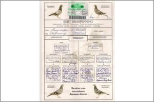 "LILAZ KUIJZER" Raça: Janssen Macho Lilás Tipo: Voador reprodutor GRANDE REPRODUTOR JANSSEN -- directo JAN KUIJZER O PAI é o " GOED VAAL " de Jan Kuijzer Pai do " Van SCHALIE 39 " 2e Vitesse WHZB 1994 O Llaz Kuijzer é consaguinio do Schalie 39 pombo campeão nacional que ganhou entre outros prémios 1º Roye 5234 pombos 1º Kapellen 9128p - 1º Strombeek 9210p - 4º Duffel8798p - 5º Houdeng 2689 p Filho do " VAAL 87 " é só irmão do pombo Campeão Nacional da Holanda o celebre " SCHALIE 39 " Ganhou entre outros prémios : 1e Roye 5.234 pombos 1e Chimey 3.441 p. ,1e Meer 1000 p , 1e Kapellen 9.128 p,1e Strombeek 9. 210 p 4e Duffel 8.798 p 5e Houdeng 2.689 p 7e Strombeek 4.006 p