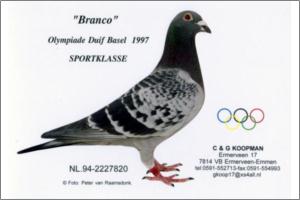 "JOLINE extra femea Koopman X K" Raça: KANNIBAL/KOOPMAN Fêmea Pedrado Tipo: Reprodutor A " JOLINE "filha Kleinzoon Bourges 6545672/00 dirk van dyck oPai é consaguinio Den Bourges X 6515249/97 dirk van dyck x Van Elsacker-Jespen Schilde. A Mãe 1732638/03 NL Jan & Kathy Lotterman filha Branco Junior X consaguinia Branco pombo Olympico Bazel 1997. Pode encontrar Den Bourges,Branco ,Goede Jaarling , Sultana Full Sister 3 th Aspigeon Federation 2007