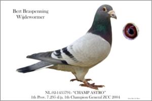 "ZEUS DOFFER JUNIOR " Raça: Janssen Macho Azul Tipo: Voador reprodutor O PAI DESTE POMBO É FILHO do " OLYMPIC ZEUS " de W.A.de Bruyn 1º WHZB.2002 E 2e Nat.Allround Olympic Lievin -- France 1º/6156pombos 1º/2555p 1º/594p acasalado a "HERA" tambemdirecta W.A.de Bruyn que foi 5ªWHZB. 2002. A MÃE DESTE POMBO é a "SUSANTA " que é filha do " LIMO " brother " ACE FOUR " A.Schaerlaeckens e da " TONIA " pombo base Comb. Verbree que é filha do " ULTRA DOFFER " com a Kweekduifje202/91