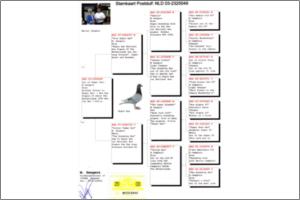 "Rooie" Dr. Rooie Bakker" Raça: Kuijpers/jan arden Macho vermelho Tipo: Reprodutor O pai do "de Rooie" é o N:1206850/98. 1e Nat. Perpignan 1e Nat.St. Vincent 3e Int. Duivinnen Pau 4eInt. Nationaal Perpignan 5eNationaal Perpignan 6eNationaal St.Vincent 6eNationaal Perpignan 7eNationaal Montauban. amãe é a N:2177038/96 filha do "Lupino91" Direct Gardien RBB,Maasdijk Winners Int. Barcelona2002