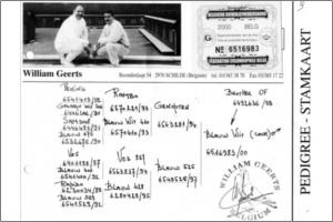 "MALHADOGEERTS-00" Raça: WILLIAM GEERTS Macho Malhado Tipo: Reprodutor Extra a reproduzir com várias femeas todas distançias. Irmão do celebre 6492636/98 super crak de William Geerts.