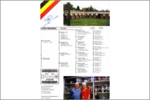 " De ZUART " Debusschere" Raça: Debusschere /Vaderwe Macho Pedrado Tipo: Reprodutor Na linha do "De Zuart " apareçe os melhores sangues de Fundo e G.Fundo da Bélgica. O PAI " LEEUW" Zuart fez de BARCELONA em 2000-1906e em 13659p em 2001-942e em 13161p em 2002-1; em 292p e 107e em 13021p. O avo " De 44 /93 foi 1e ASDUIF F.B.S.D e 4e. ASDUIF.F.K.D.B. A mãe 134/01 é filha de directos VanderWegen« 227/93 ». Faz casal com a Pigarça 06-532 DV-Menne und Tochter.