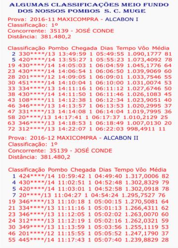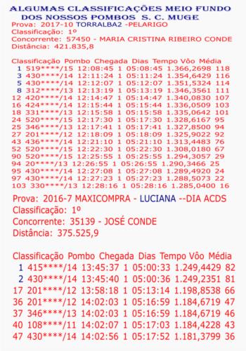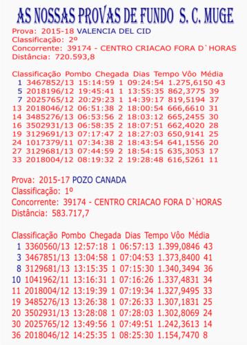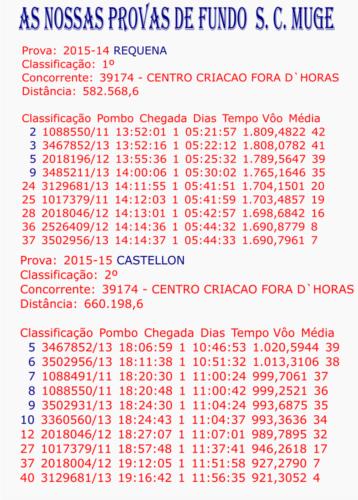 1º fERNAN NUNES I S.C.MUGE 1º NAVALVILLAR II S.C. MUGE 2014 2º CIUDAD REAL II S.C. SALVATERRENSE 2014 2º CIUDAD REAL II S.C.MUGE 2014 4º FERNAN NUNES II 1859 POMBOS Z/Sul poente 5º PUEBLO DON RODRIGO S. C. SALVATERRENSE 2014 8º LUCIANA II S. C. MUGE 2014 10º LUCIANA I DIA ASSUCIAÇÃO S.C. MUGE 2014 11º NAVALVILLAR II S,C. SALVERRENSE 2014 27º Fernan nunes II 4.485 pombos 1º MARMOLEJO I S.C.MUGE 4º MARMOLEJO I 1865 POMBOS Z/Sul poente 20º LUCIANA II SALVATERRENS 2014 30ºmarmolejo I 4468 pombos 30º CIUDAD REAL I SALVATERRENSE 2014 45º MAQUEDA II SALVATERRENSE 2014 53º TRUJILLO II SALVATERRENSE 2014 2º CACERES IV S.C.MUGE 12ºcaceres IV 2583 pombos 18º CIUDAD REAL I S.C.MUGE 2014 3º MERTOLA II S.C.MUGE 3º mertola II 1184 pombos Z/Sul poente 4º Mertola II 2332 pombos Z/Sul poente 10ºMertola II 3048 pombos Distrito 3º CACERES II S.C.MUGE 15ºcaceres II 1143 pombos Z/Sul poente 25º MAQUEDA II S.C.MUGE 2014 26ºcaceres II 2796 pombos distrito 3º RETAMAR III S.C. MUGE 14º RETAMAR III 1654 POMBOS Z/Sul poente 29ºretamar III 3882 pombos DISTRITO 4º JARAICEJO S.C.MUGE 43º TRUGILLO II S,C. MUGE 2014 64º JARAICEJO 2554 POMBOS Z/Sul poente 8º BERLANGA I...S.C.MUGE 27º BERLANGA I 2381 POMBOS Z/Sul poente 12º NAVALVILAR I S.C.MUGE 14º CACERES I S.C.MUGE 19º BAZA I (FUNDO ) 66º BAZA I 849 POMBOS Z/S P FUNDO 19º MARMOLEJO II S.C.MUGE 43º MARMOLEJO II 1792 POMBOS Z/Sul poente 26º ALGOZ II S.C.MUGE 32º NAVALVILLAR S.C.MUGE 33º CACERES III S.C.MUGE 281ºcaceres III 2690 pombos DISTRITO 52º RETAMAR I S.C.MUGE 387º Almodovar 2592 pombos DISTRITO ANILHA DOURO MEIO FUNDO SALVATERRA E MUGE 2014 ANILHA DOURO MEIO FUNDO MUGE 2013 ANILHA PRATA GERAL 2013 MUGE ANILHA DOURO DISTRITO YEARLINGS 2012 Z/SUL POENTE ANILHA DOURO YEARLINGS 2012 S C MUGE ANILHA PRATA DISTRITO YEARLINGS 2012 Z/S É SÓ UM FORA DHORAS