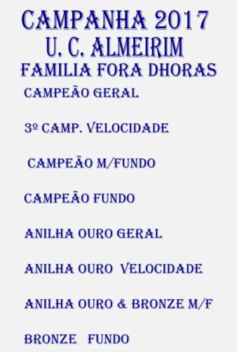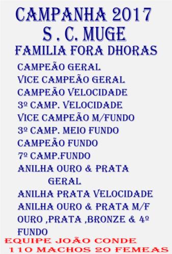 | L.I.X.O - CAMPEÃO GERAL - MEIO FUNDO - FUNDO G.C. VONTADE CORUCHE - CAMPEÃO FUNDO S.C. MUGE vice geral |