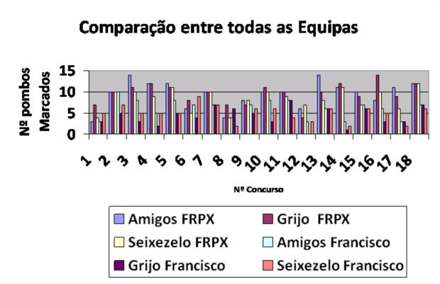 Comparação entre as 3 equipas F.R.P.X. Moreiras