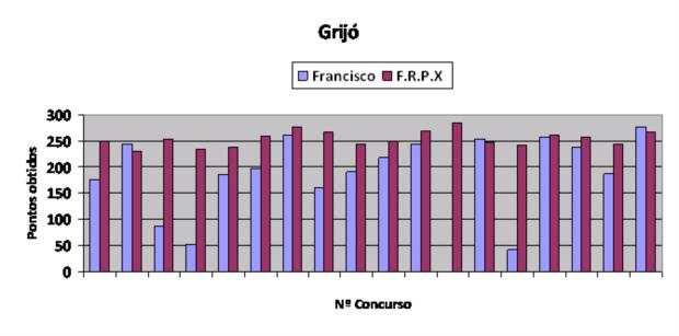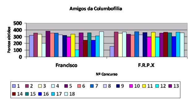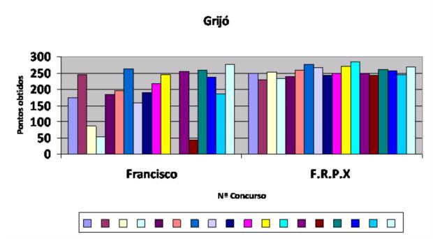 Médias dos primeiros prémios no Grupo Columbófilo de Grijo, serve de referência para visualizar as médias que