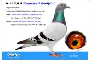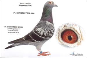 ‘Groten’ is winner of 1. Angouleme - 398 birds 1. Chartres - 341 birds 1. Tours - 267 birds 2. Blois - 441 birds 5. prov. Tours - 2,409 birds 7. prov. Blois - 1,332 birds 11. prov. Poitiers - 2,766 birds ‘Groten’ is father to 2. prov. acebird long distance (old) KBDB 2006 ‘Groten’ is grandfather to ‘Monty’ 1. prize / 11. Nat. Montauban 2010 - 6,654 birds 34. Nat. Souillac 2010 - 7,045 birds ‘Groten’ is grandfather to 1. prov. acebird long distance KBDB 2005 ‘Groten’ is father to 2. prov. acebird long distance (old) KBDB 2006 ‘Groten’ is a direct son to ‘Pletsekopske’ ‘Pletsekopske’ is grandmother to ‘Pipo’ 1. Clermont - 541 birds 1. Clermont - 282 birds 35. prov. Argenton - 5,134 birds 37. prov. Tours - 1,981 birds 47. prov. Tours - 3,135 birds