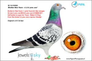 ORIGINAL ANTOINE & RUDI DE SAER IRMÃO DO SUPER "NEW TOURS 2" E IRMÃO DE ANTONIO - VENCEDOR DO CONCURSO NACIONAL DE SOULLIAC EM 2012 CONTRA 7756 P. Father is ‘Son Groten’, great class racer direct from sensational ‘Groten’ x ‘Rebecca’ Winner of 2. prov. acebird long distance (old) KBDB 2006 31. prov. Brive - 1,251 birds 34. Nat. Brive - 9,466 birds 35. prov. Chateauroux - 4,308 birds 64. prov. Limoges - 5,804 birds Direct son to ‘Groten’ x ‘Rebecca’ ‘Groten’ is winner of 1. Angouleme - 398 birds 1. Chartres - 341 birds 1. Tours - 267 birds 2. Blois - 441 birds 5. prov. Tours - 2,409 birds 7. prov. Blois - 1,332 birds 11. prov. Poitiers - 2,766 birds ‘Groten’ is father to 2. prov. acebird long distance (old) KBDB 2006 ‘Groten’ is grandfather to ‘Monty’ 1. prize / 11. Nat. Montauban 2010 - 6,654 birds 34. Nat. Souillac 2010 - 7,045 birds ‘Groten’ is grandfather to 1. prov. acebird long distance KBDB 2005 ‘Groten’ is father to 2. prov. acebird long distance (old) KBDB 2006 ‘Groten’ is a direct son to ‘Pletsekopske’ ‘Pletsekopske’ is grandmother to ‘Pipo’ 1. Clermont - 541 birds 1. Clermont - 282 birds 35. prov. Argenton - 5,134 birds 37. prov. Tours - 1,981 birds 47. prov. Tours - 3,135 birds ‘Rebecca’ is a full brother to ‘Perigueux’ ‘Perigueux’ is winner of 1. Perigueux- 138 birds 6. prov. Perigueux - 1,053 birds 2. Ruffec - 278 birds 14. prov. Ruffec - 2,710 birds 24. Poitiers - 2,413 birds ‘Perigueux’ is top breeder & father to - ‘Zwarten As’ 1. prov. acebird long distance KBDB 2009 5. Nat. acebird long distance (over 4 races) 2009 10. Nat. acebird long distance KBDB 2009 Co-winner 2. Nat. championship long distance KBDB 2009 1. prize / 3. Nat. Brive- 17,456 birds 1. prize / 47. Nat. Limoges - 11,869 birds 23. prov. Tours - 2,898 birds 96. Nat. Cahors - 7,347 birds 179. Nat. Souillac - 7,597 birds - ‘Zwartje’ 3. prov. acebird long distance KBDB 2006 - ‘Limoges’ 4. prov. acebird long distance KBDB 2005 - ‘Blue Rudi’ breeder of 1. prize winner One Loft Race Thailand 2009 (Declerq-Blancke) - ‘Nest sis Blue Rudi’ mother to 2010 bred ‘Black Lola’ (at Declerck-Blancke) 1. prize / 4. prov. Ablis- 10,425 birds 2. prize / 26. prov. Tours - 3,375 birds 3. prize / 46. prov. Clermont - 18,112 birds - ‘Femke’ 1. Ablis– 427 birds 1. Clermont – 376 birds - ‘Late Zwarten’ breeder of top talent ‘Messi’ 2. prov. acebird long distance KBDB 2011 1. Ablis - 268 birds 1. Clermont - 146 birds 2. La Chartre – 291 birds 8. prov. La Chartre - 2,815 birds 2. Limoges - 249 birds 4. prov. Limoges - 2,890 birds 8. Nat. Limoges - 14,673 birds 2. Tours - 249 birds 4. Clermont - 386 birds 10. Argenton – 288 birds 55. prov. Argenton - 3,125 birds 327. Nat. Argenton - 19,782 birds ‘Perigueux’ is brother to ‘Den 18’ – super breeder paired to ‘t Goedje’ ‘Perigueux’ is grandson to ‘Limoges’ & ‘Wittenbuik’ Vandenabeele