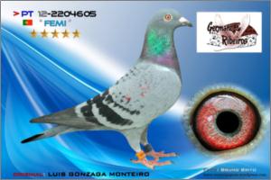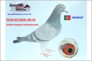 | Pai: 194116/10 POR - "SUPER 16" | Mãe: 7491561/07 POR - "BELGUINHA" | "SUPER 16" Anilha de BRONZE Distrital de zona Sotaventos em 2012 de Velocidade Anilha de BRONZE Distrital de zona Sotavento 2 em 2012 de Velocidade Anilha de Ouro no G.C. Guadiana de Velocidade e Geral em 2012 Anilha de Ouro no C.R. Alturense de Velocidade e Geral em 2012 8º POMBO AS DISTRITAL EM 2012