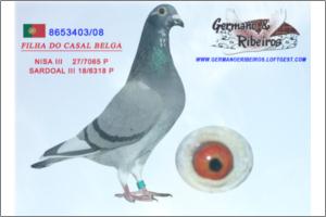 "BELGA 403" Raça: CASAL BELGA EXTRA VOADORA E REPRODUTORA IRMÃ DO SUPER "21" Nisa III 11/1560 P 22/3539 P 27/7065 P Sardoal III 14/3276 P 18/6318 P