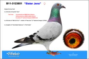 - - - - > Mother to ‘Daughter Bleken’ Mother is ‘Bliksemgirl’, original Rik Cools and grandchild to both legends ‘Bliksem’ & ‘Bieke’ She develops as a top class breeding hen & is mother to a/o ‘644/11’ 1. Ablis – 196 birds 4. Tours – 117 birds 5. Ablis – 62 birds 12. Clermont – 417 birds 31. Blois – 256 birds
