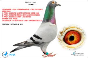 - BE06-3008003 ‘Rudy’ New nr. 1 breeder Gaby Vandenabeele Father to 1. Nat. acebird long distance yearlings KBDB 2013 (‘Super Romeo’) Father to 1. Nat. Tulle YL – 5,731 birds 2014 (‘New Bliksem’) G.father ‘Super Ricka’, 1. Nat. ace GMD KBDB YB 2015 (Jespers-VDWegen) G.father ‘Prince Rudy’, 1. Nat. Limoges YL 6,275 birds 2015 (G. Clicque) G.father 1. TT Nanteuil YB 7,791 birds (M. Linsen)