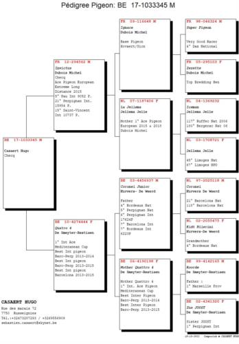 Super introduction, a legitimate brother of the best Belgian pigeon in 4 years in Barcelona... an excellent Pigeon, from the house of Hugo Casaert... many thanks to the family, namely to my great friend Sebastien Casaert. Making an introduction of this level is only possible because we have a great friendship. Thank you very much.