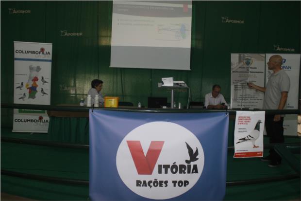 Se seguida chegamos à segunda intervenção do dia, que ficou a cargo de Paulo leite da Zoetis. O Paulo tem sido também um amigo da ECOMOR, sempre que possível marca presença e dá o seu contributo para o engrandecimento do evento. O seu caminho com o Columbofilia Online tem sido cada vez mais próximo, para alem do encontro anual sempre que acontecem as jornadas em Montemor, este ano voltamos a encontrar no Algarve, tivemos o privilegio de estar à conversa algum tempo, em conjunto com o veterinário da Federação Portuguesa de Columbofilia, o Dr José Luís, momento muito interessante, com inúmeras explicações sobre esquemas de vacinação, produtos disponíveis, autorizados e distribuídos no território Português. A sua intervenção, sábado passado foi interessante, falou-nos essencialmente de vacinas, da necessidade de trocar os antibióticos pelos Anti genes. Debruçou-se um pouco sobre a imunidade inata dos animais, a imunidade adquirida, aquela que é herdada e aquela que nós lhe podemos induzir (vacinação). Entretanto o publico, sendo um tema que por norma traz alguma polémica, tomou a palavra e fez inúmeras perguntas, varias intervenções e até algumas delas um pouco mais calorosas. Muitos atribuíram à FPC a responsabilidade de termos apenas no nosso mercado duas vacinas homologadas e a preços muito elevados, tentou ser explicado pelo orador que essa responsabilidade tem a ver com o mercado, ou a falta dele, ou seja os laboratórios e as casas comerciais têm na columbofilia e nestas vacinas um mercado tão pequeno que não lhe justifica apostar mais neste sector e não fosse o amor à camisola de alguns agentes, nem estas teríamos no mercado Português. Na essência foi uma palestra eloquente com muita interacção e que no final deixou um alerta: até hoje o esquema de vacinação do pombo correio passa por uma dose para a paramixovirose anualmente, mas como em outras espécies, em que os planos têm vindo a ser adequados à realidade, em principio no pombo de competição poderá este esquema ter de ser repensado também,… e em breve deve ser apresentado à federação esta realidade, para entrar em discussão.