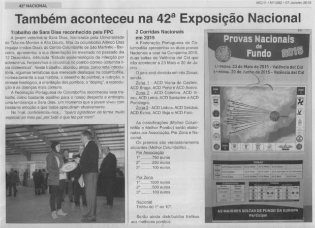 Extrato do jornal "Mundo Columbófilo", Janeiro 2015