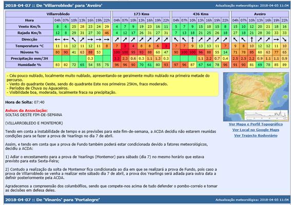 O departamento de meteorologia da FP Columbofilia, tem executado um trabalho francamente positivo, com o senão de, em 8 de Abri, ter fechado para férias.