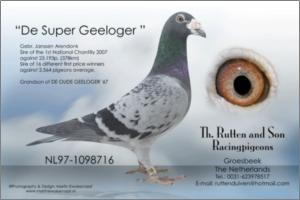 "JANSJE de SUPER GEELOGER" FILHO DE UM DOS FUNDADORES DA COLÓNIA Th. RUTTEN en Zn.- GROESBEEK AQUISIÇÃO DIRECTA a Th. Rutten en Zn. Fotos anexas: PAI: NL 1098716-97 - de SUPER GEELOGER MÃE: NL 1243655-08 - SUPER SCHALIE