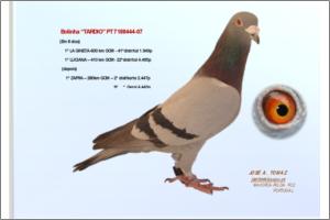 | Pai: 5100742/07 BEL - "LE PHÉNOMÉNE" | Mãe: 7188118/07 POR - "ARISCA" "BOLINHAS" | "LE PHÉNOMÉNE" DIRECTO DE HULS PAUL -ZONHOVEN A mãe é filha do "PHÉNOMÉNE" NULENS 5118824/99 POMBO CAMPEÃO NACIONAL DE 1/2 FUNDO 2002 COM 3 VITÓRIAS REGIONAIS EM 6 SEMANAS 2002 E CAMPEÃO OLIMPICO 2003. 1ºPROV.ORLEANS 5.342P,1ºPROV.LIMOGES 1497P,1ºPROV.BOURGES 1387P,1ºPROV.LA FERTE 1131P,2ºPROV.ARGENTON 2115P. E DA "CELINE 8 PROV.ASDUIF KBDB2000 HERBOTS.