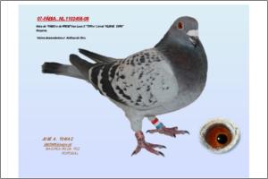 | Pai: 6493305/96 POR - " "RUBI FONCÉ" BOLINHAS" | Mãe: 5244909/02 NL - "HENK DE VRIES" | " "RUBI FONCÉ" Campeão de Fundo (1xanilha oiro + 2xanilha prata) Viajou +-30.000km).Dezenas classificações todas as distâncias.Reprodutor Extra. Pai de 5251401 MARATONA 2007-Melhor Dist.Coimbra (Barcelona+Alcoy) 76ºNacional Pai de 7188130 Barcelona 2009- 4º no Distrito - 42ºNacional Zona 3 (850/900Km) Pai de 7188414 - 1º La gineta/2010 -590km 65º distrito 2.266 p.