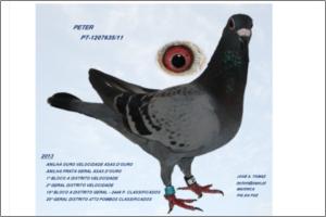 "PETER vdm" 1ª BLOCO A - DISTRITO -VELOC.-6 PROVAS +- 13000 POMBOS; 2ª GERAL DISTRITO-VELOC.-6 PROVAS +-25.000 POMBOS ; 16º BLOCO A-DISTRITO GERAL(2.446 CLASSIF.=20%INSCRITOS); 20º TOTAL DISTRITO GERAL ( 4.772 CLASSIF.=20% INSC.)-ANILHAS OIRO VELOCID. E PRATA GERAL ASAS d´OURO.