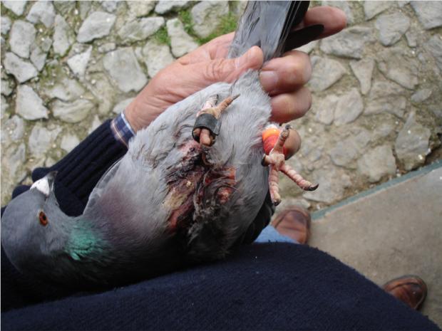 “Este estudo mostrou que um aumento na margem de espaço por pombo é acompanhado de uma redução de atividade relacionada à produção de calor, e uma melhora no comportamento individual e coletivo. Comparado ao nível de tolerância máximo de espaço de 350 cm² por pombo atualmente praticado, níveis de 210 e 280cm² aumentam o risco de lesões graves em 8.8 e 5.2 vezes respectivamente.