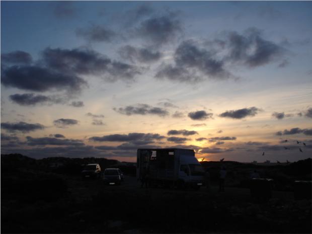 Mil e duzentas (1200) aves foram embarcadas na noite de quarta-feira e efetivamente foram submetidas de imediato a um período de 17 (dezessete) horas sem nenhuma água, até serem acampadas em Carnarvon, cerca de 950 Km na estrada na direção norte, na manhã de quinta-feira e representou o estágio 1 do plano total de viagem.