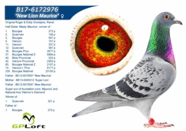 Uma neta do "Maurice" já deixou marcas em Portugal quando na posse do columbófilo vimaranense Sebastião Freitas Martins. O seu valor foi reconhecido no leilão levado a cabo pela FPC com os seus descendentes a serem licitados na venda total por 6100 euros, 4100 euros, 3800 euros, 3100 euros, 1800 euros e 1400 euros... ela própria foi adquirida por 900€ apesar da sua idade (8 anos).