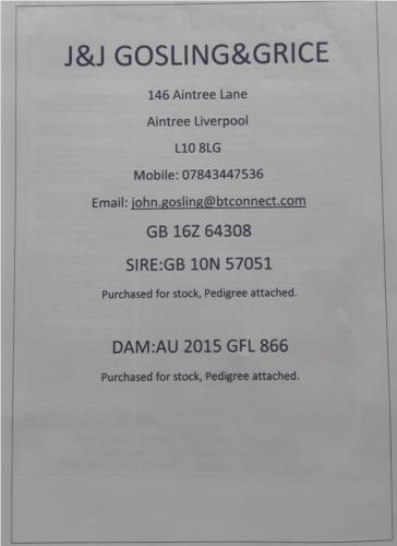 Descrição: fêmea de excelentes linhas, nomeadamente "A. MARCELIS", "WAL ZOONTJES", "STIENECKER" e "P. VEENSTRA". Esta reprodutora apresenta descendentes com excelentes resultados. |